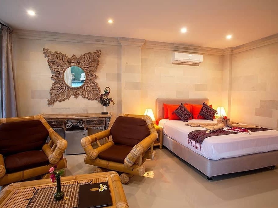 Nos deux chambres supérieures, d’environ 25 m², sont situées au rez-de-chaussée autour de la piscine. Elles disposent toutes deux d’un salon intérieur, d’une petite armoire, de l’air conditionné, d’un coffre-fort, d’un réfrigérateur de 50 L, d’une bouilloire et d’un sèche-cheveux.