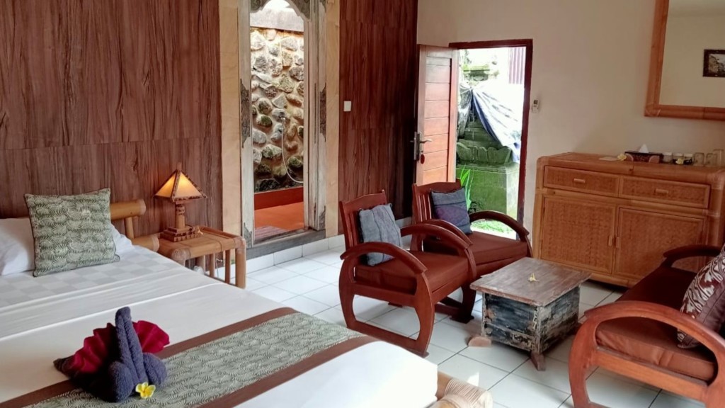 We draw your attention to the fact that the Bungalow is also located in the heart of the village, which implies to hear the inevitable background sound of a Balinese village... (hens, roosters, dogs... and even human beings :-)