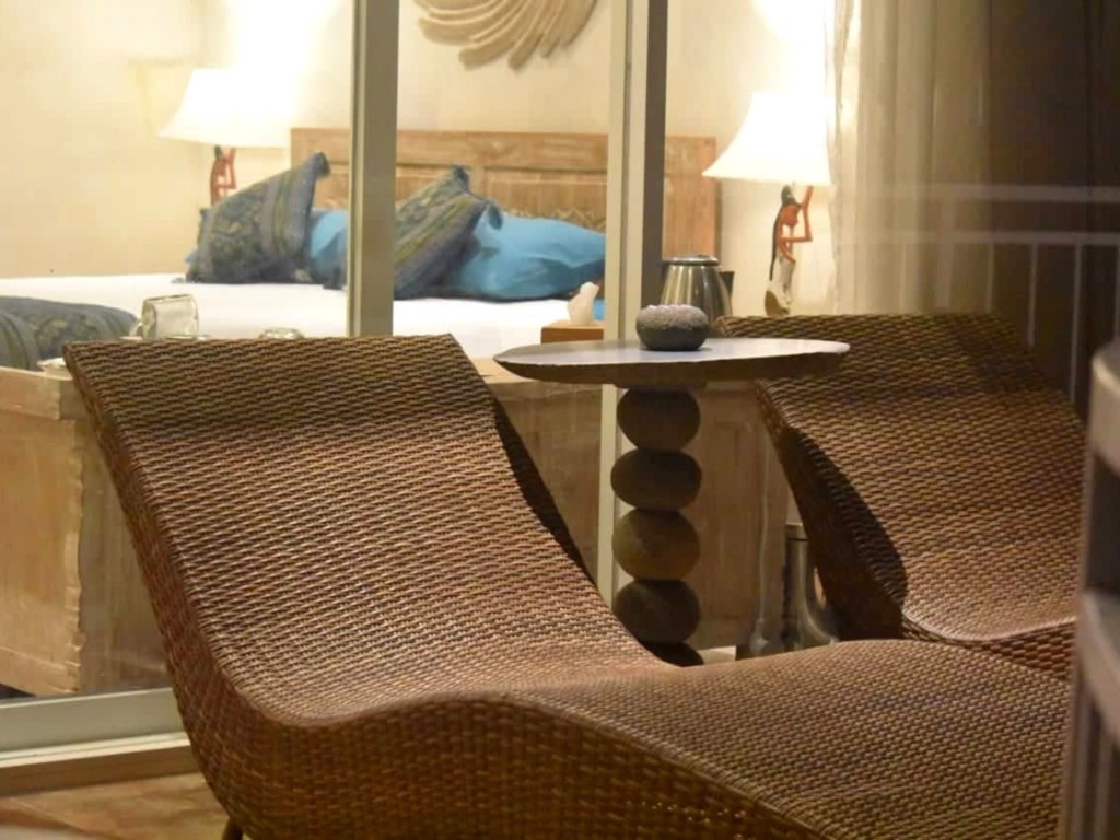 It includes air conditioning, a shelf, a 50-liter refrigerator, a kettle, a small safe, and a hairdryer.